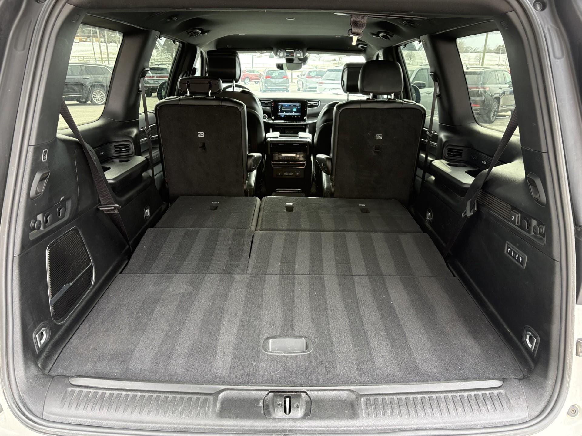 3rd Row Seat, 4-Wheel Disc Brakes, A/C, ABS, Active Suspension, Adaptive Cruise Control, Adjustable Pedals, Adjustable Steering Wheel, Air Suspension, Aluminum Wheels, AM/FM Stereo, Auto-Dimming Rearview Mirror, Automatic Headlights, Automatic Highbeams, Auxiliary Audio Input, Back-Up Camera, Blind Spot Monitor, Bluetooth Connection, Brake Assist, Bucket Seats, Child Safety Locks, Climate Control, Conventional Spare Tire, Cooled Front Seat(s), Cruise Control, Daytime Running Lights, Driver Adjustable Lumbar, Driver Air Bag, Driver Illuminated Vanity Mirror, Driver Vanity Mirror, Floor Mats, Fog Lamps, Front Collision Mitigation, Front Head Air Bag, Front Side Air Bag, Gasoline/Mild Electric Hybrid, Hands-Free Liftgate, HD Radio, Heads-Up Display, Heated Front Seat(s), Heated Mirrors, Heated Rear Seat(s), Heated Steering Wheel, Immobilizer, Integrated Turn Signal Mirrors, Intermittent Wipers, Keyless Entry, Keyless Start, Knee Air Bag, Lane Departure Warning, Lane Keeping Assist, Leather Seats, LED Headlights, Lithium Ion Traction Battery, Locking/Limited Slip Differential, Mirror Memory, MP3 Capability, Multi-Zone A/C, Navigation System, Pass-Through Rear Seat, Passenger Adjustable Lumbar, Passenger Air Bag, Passenger Air Bag Sensor, Passenger Illuminated Visor Mirror, Passenger Vanity Mirror, Power Door Locks, Power Driver Seat, Power Liftgate, Power Mirror(s), Power Passenger Seat, Power Steering, Power Windows, Premium Sound System, Privacy Glass, Rain Sensing Wipers, Rear A/C, Rear Collision Mitigation, Rear Defrost, Rear Head Air Bag, Rear Parking Aid, Remote Engine Start, Remote Trunk Release, Requires Subscription, Running Boards/Side Steps, Satellite Radio, Seat Memory, Security System, Smart Device Integration, Stability Control, Steering Wheel Audio Controls, Tire Pressure Monitor, Tires - Front Performance, Tires - Rear Performance, Tow Hitch, Traction Control, Transmission w/Dual Shift Mode, Trip Computer, Universal Garage Door Opener, Variable Speed Intermittent Wipers, WiFi Hotspot, Woodgrain Interior Trim